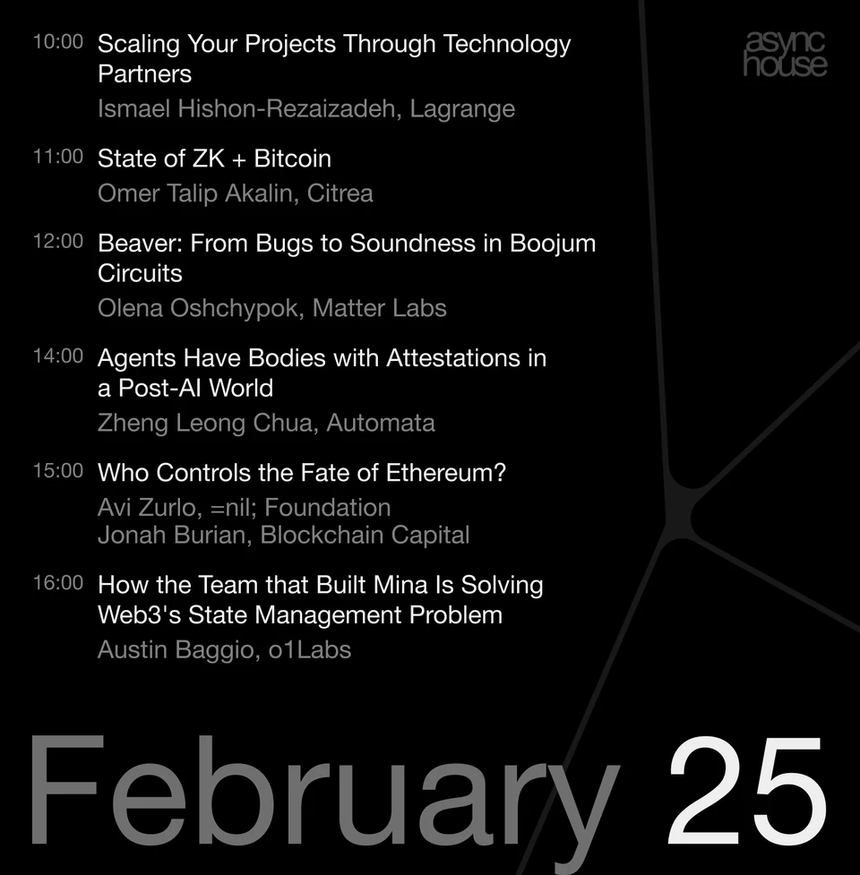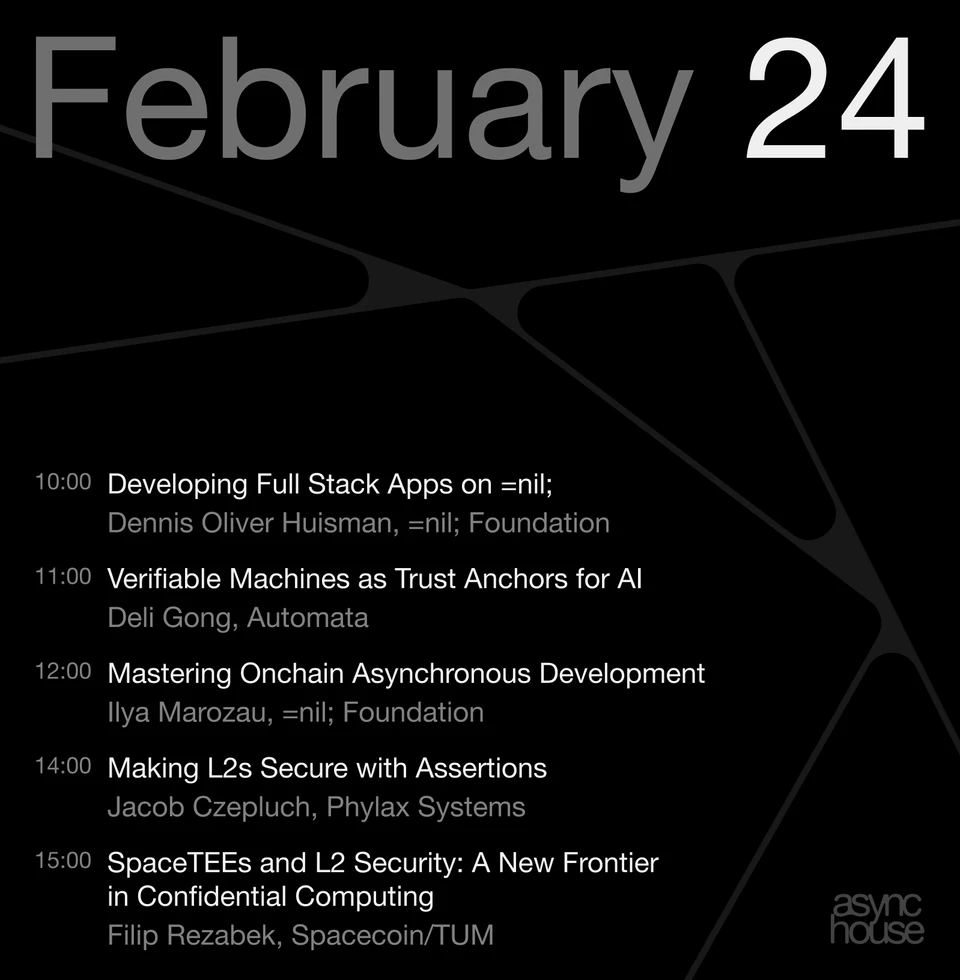 Async House was =nil; Foundation’s first week-long hacker house, hosted during ETHDenver 2025. It brought together 9 residents, 100+ guests, and 21 speakers for a curated program of talks and workshops