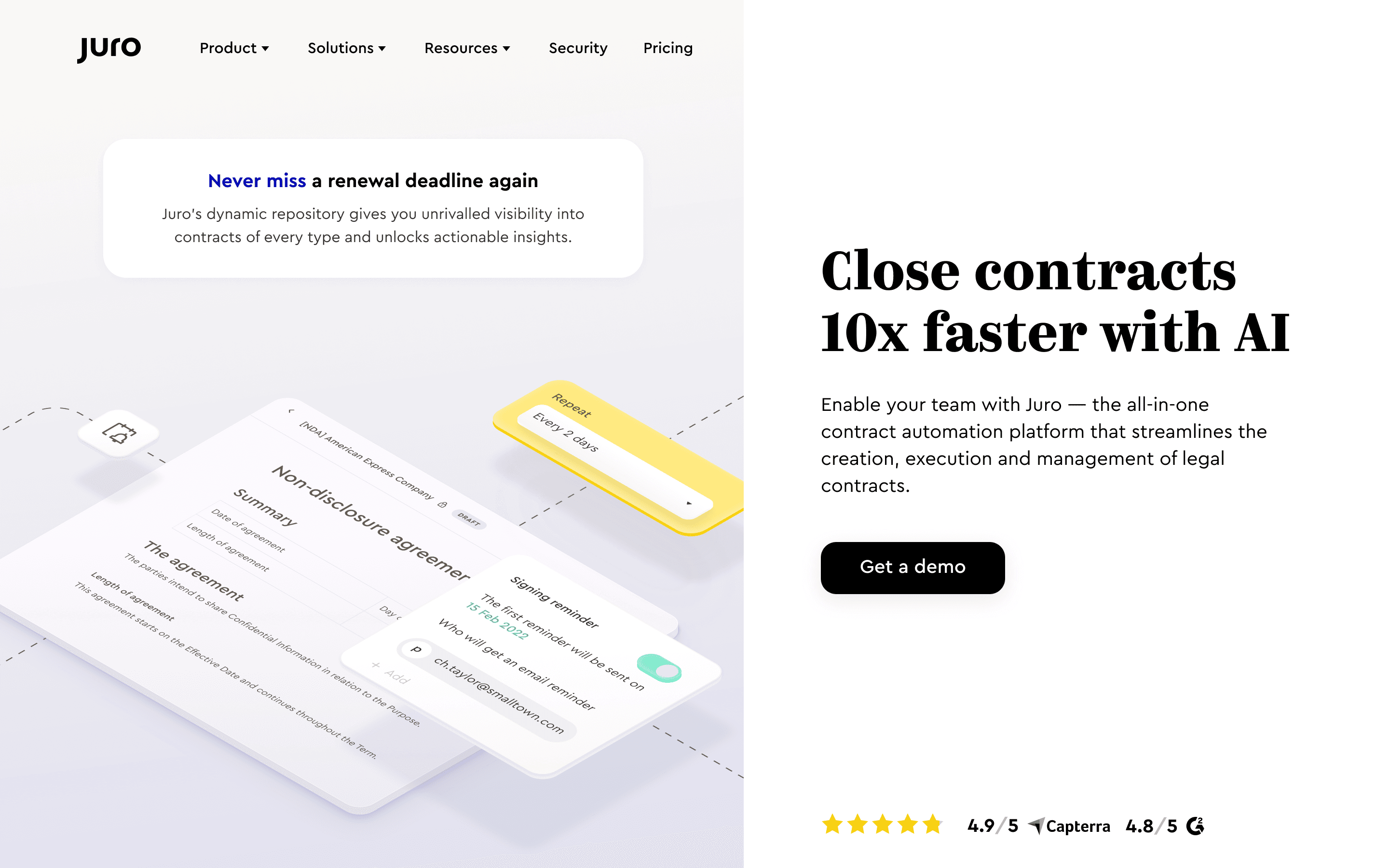 Juro is an all-in-one contract automation platform that helps legal and business teams create and manage contracts