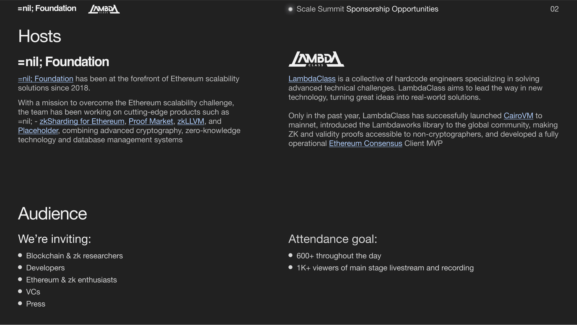Scale Summit is =nil; Foundation’s largest conference, dedicated to blockchain scalability and zero-knowledge technologies. It gathered 1,500+ attendees, achieved a perfect NPS of 100, and received industry-wide recognition