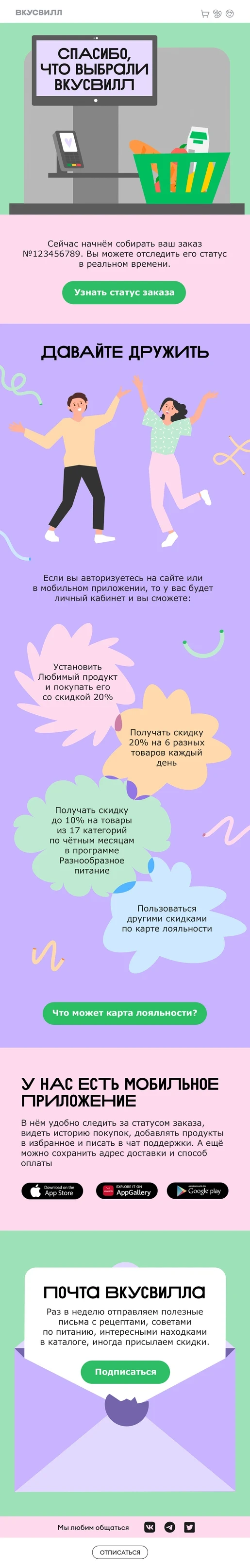 As a part-time designer, I worked on email newsletters for VkusVill. My work included designing email layouts and creating illustrations to support brand communication and promotional messages.